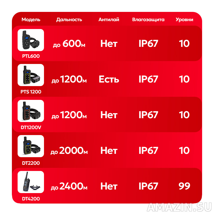 Это универсальный электронный ошейник для дрессировки собак и щенков от 6 кг. В устройстве предусмотрено до 10 уровней силы для электрического импульса и вибрации, поэтому можно подобрать минимальное воздействие для любого порога чувствительности. С помощью ошейника с током Trainertec PTL600 можно безопасно и эффективно научить собаку командам или отучить от вредных привычек. За качество сигнала и устойчивость связи отвечают современные радиопередатчики, которые изготавливаются на заводе Trainertec. Дальность связи PLT600 может достигать до 600 метров. Платы и все комплектующие отвечают строгим требованиям европейской сертификации. Ошейник с током Trainertec PTL600 является полностью защищенным от влаги, поэтому собаку можно выгуливать даже под дождем. Кроме того, этот ошейник вполне подходит для охоты. Время отклика команды от ПУ составляет всего 30мс.