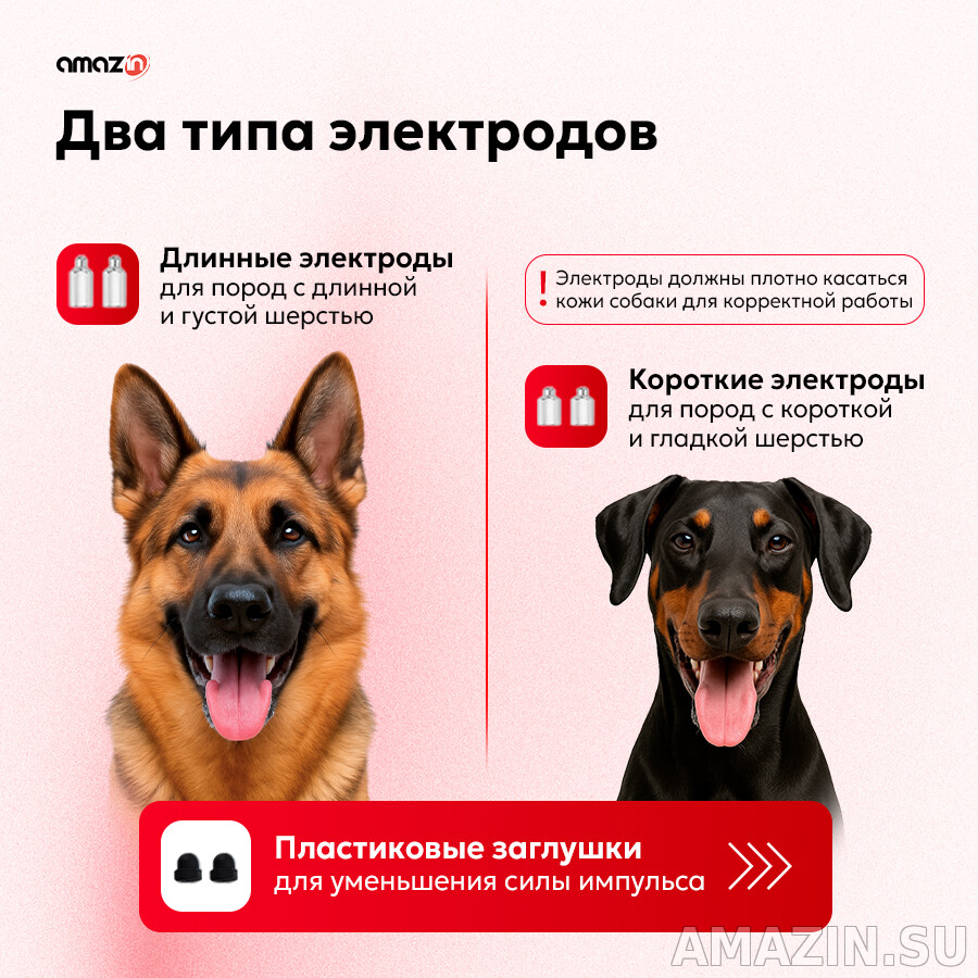 За безопасное использование продукции Trainertec отвечают микропроцессоры, которые блокируют чрезмерное электрическое воздействие. В зависимости от длины шерсти собаки, в комплектации ошейника с током PTL600 предусмотрены короткие и длинные контактные точки (электроды).