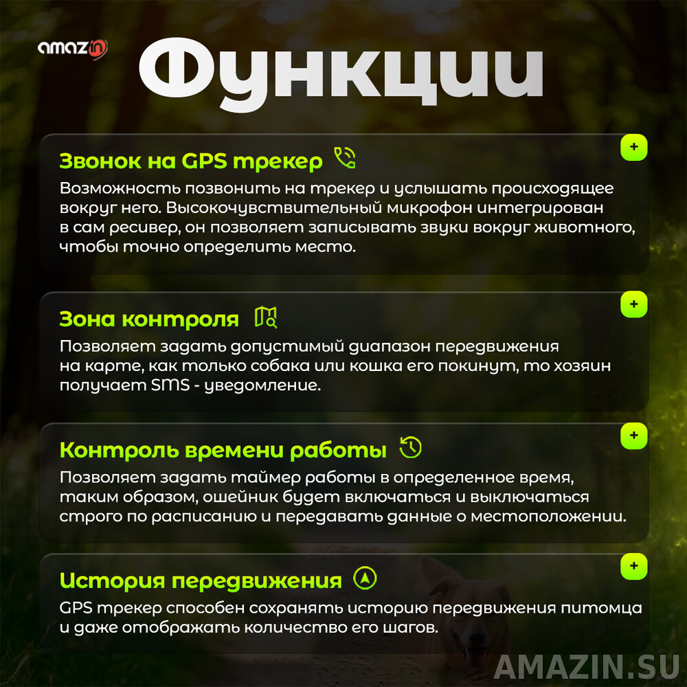 GPS трекер для кошек способен сохранять историю передвижения питомца и даже отображать количество его шагов. В ошейниках для отслеживания домашних животных GPS365 встроена функция дистанционного управления, это позволяет хозяину позвонить на трекер и услышать происходящее вокруг него. Высокочувствительный микрофон интегрирован в сам ресивер, он позволяет записывать звуки вокруг животного, чтобы точно определить место по окружающей среде. Кроме того, ошейник можно перезагрузить, выключить и включить дистанционным способом. Функция "Будильник" дает возможность задать таймер работы в определенное время, таким образом, ошейник будет включаться и выключаться строго по расписанию и передавать данные о местоположении. Данная функция позволяет значительно экономить заряд.