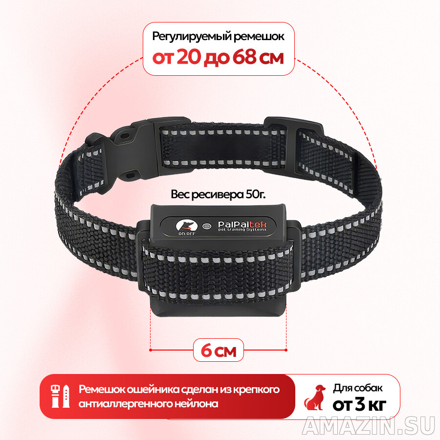 - Нейлоновый ремешок ошейника: Выполнен из крепкого нейлона, не вызывающего аллергических реакций, есть возможность регулировки длины ошейника.
