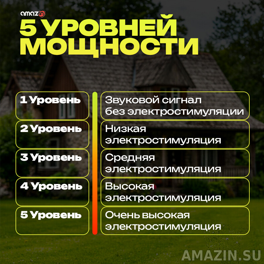 - Нарастающее звуковое воздействие — Если ваша собака продолжает двигаться в сторону границы, будет выдан предупреждающий сигнал, а затем будет оказано электрическое воздействие;