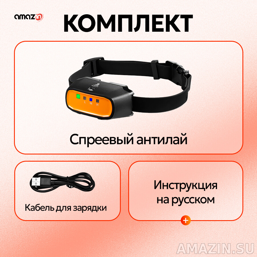 Комплектация антилай ошейника с цитронеллой SP12: