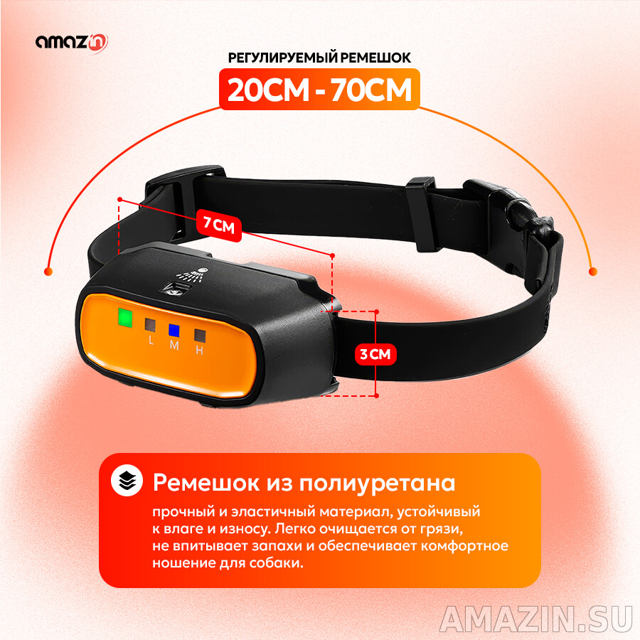 Спреевый ошейник антилай SP12 с цитронеллой имеет удобную настройку чувствительности микрофона с 3 уровнями: низким, средним и высоким. Ошейник сочетает в себе аккумуляторный тип питания и информативную LED-подсветку, которая оповестит Вас, когда ресивер разрядится, когда спреевая жидкость будет заканчиваться, или какой уровень чувствительности выставлен. Чувствительный микрофон ошейника чётко распознаёт лай собаки, что делает срабатывания устройства практически моментальными. Полностью ошейник заряжается за 2 часа и способен работать на протяжении до 8 дней, что является преимуществом электронного антилай ошейника Trainertec SP12. Усиленный полимерный ремешок 2.0 тоньше обычного полиуретанового, но при этом сохраняет все его свойства. Дополнительно укреплённый капроновой нитью, ремешок можно отрегулировать под любой обхват шеи как крупных, так и мелких пород собак.