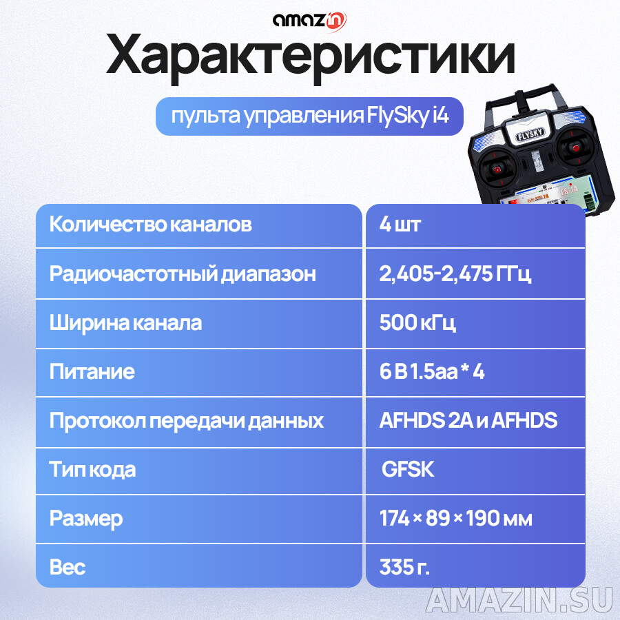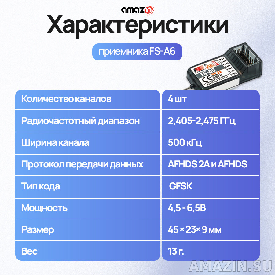 - Протокол передачи данных: AFHDS 2A и AFHDS;