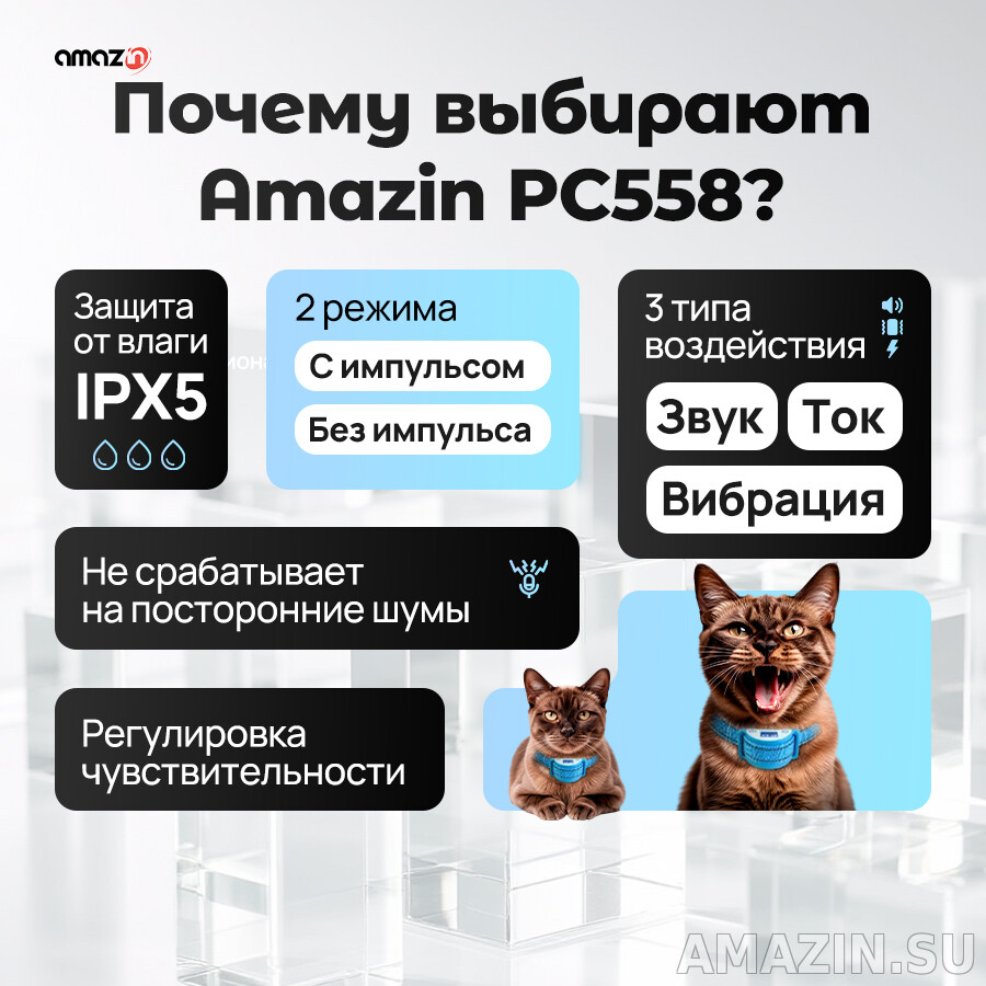 Ваша кошка или кот раздражающе мяукает без причины? Вы не можете спать, потому что домашний любимец мешает спокойному сну громкими звуками? Решение есть! Электронный ошейник антимяу Amazin PC-558 поможет вам безопасно и гуманно отучить вашего питомца от непрошенного мяуканья и сделает вашу кошку более спокойной и понимающей, а вашу жизнь с ней – приятней!