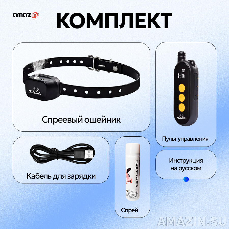 Небольшой спрей помогает предотвратить нежелательное поведение с помощью дрессировочного ошейника SP32. Это безопасное решение позволяет улучшить поведение вашей собаки с помощью 3 простых в использовании режимов дрессировки: звуковой сигнал (бип), спрей, вибрация. Когда ваша собака делает что-то, чего она не должна делать, например, лает на дверь, грызет мебель или копается во дворе, просто нажмите кнопку на портативном пульте дистанционного управления, чтобы выпустить из ошейника легкую струю цитронеллы.