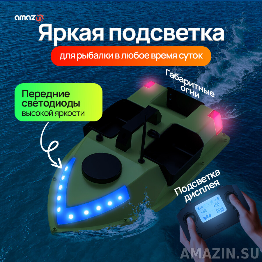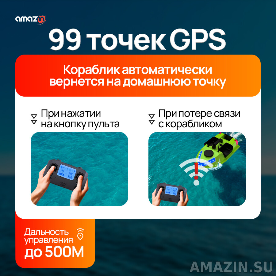 Новейший прикормочный кораблик Amazin GPS D20 со встроенным GPS на 99 точек и Авто-возвратом.