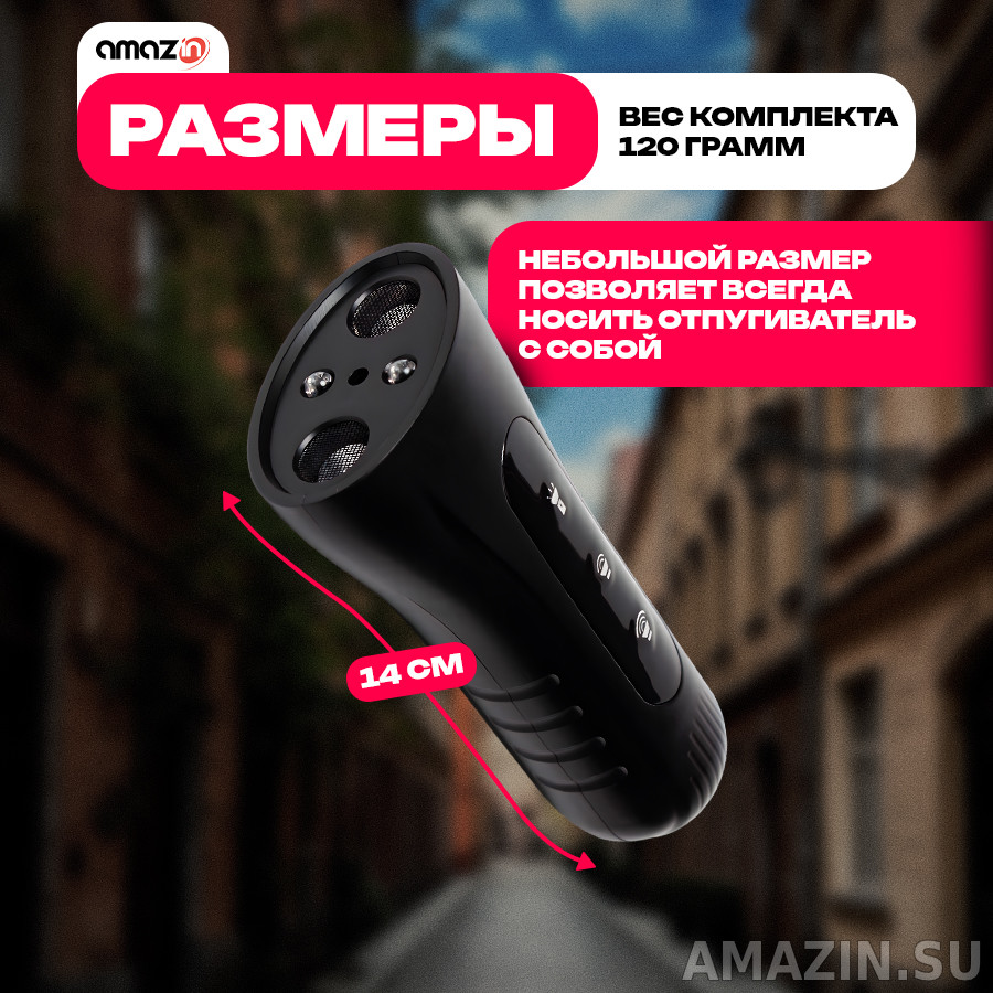 Этот компактный прибор создан для тех, кто хочет чувствовать себя в безопасности во время прогулок. Благодаря двухканальному ультразвуковому усилению с дальностью действия до 10 метров, он быстро и надёжно отпугивает собак, не давая им приблизиться. Устройство работает на все породы собак, независимо от их размера и темперамента, а благодаря бесшумности для человеческого слуха его применение остаётся незаметным для окружающих. Встроенный яркий фонарик и инфракрасная подсветка делают прибор незаменимым в тёмное время суток, обеспечивая не только защиту от животных, но и отличную видимость в условиях плохого освещения.