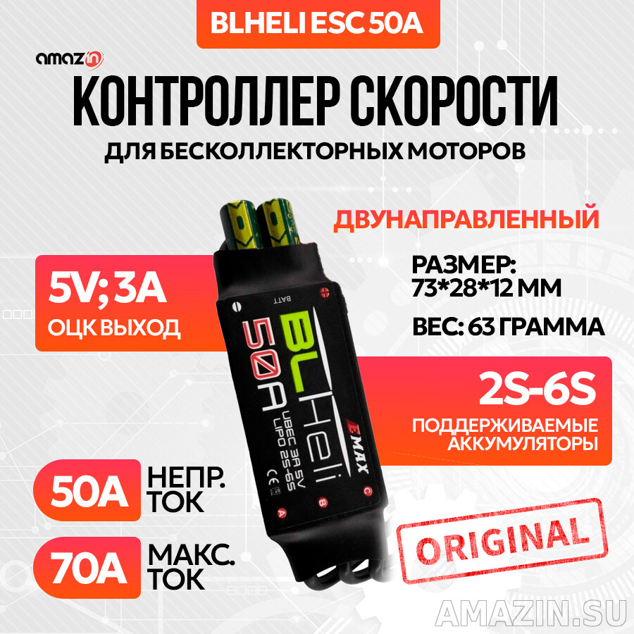 Двунаправленный контроллер бесколлекторного мотора ESC 50А для RC моделей на радиоуправлении
