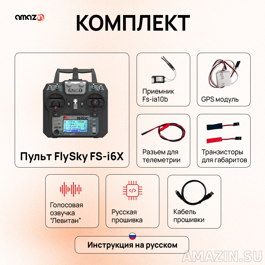 Скачать инструкцию на русском языке для Amazin Autopilot 2.0 с 10-ти канальным пультом FlySky FS-I6X |