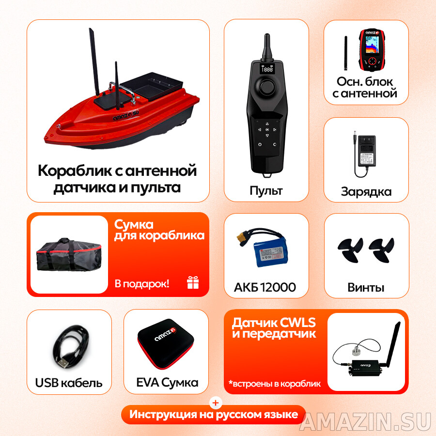 Закормочный кораблик комплектация: