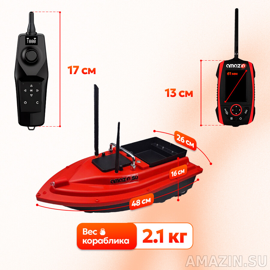 Прикормочный кораблик Amazin Скат GPS RED с эхолотом Amazin FF777 PRO CWLS