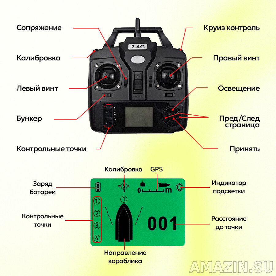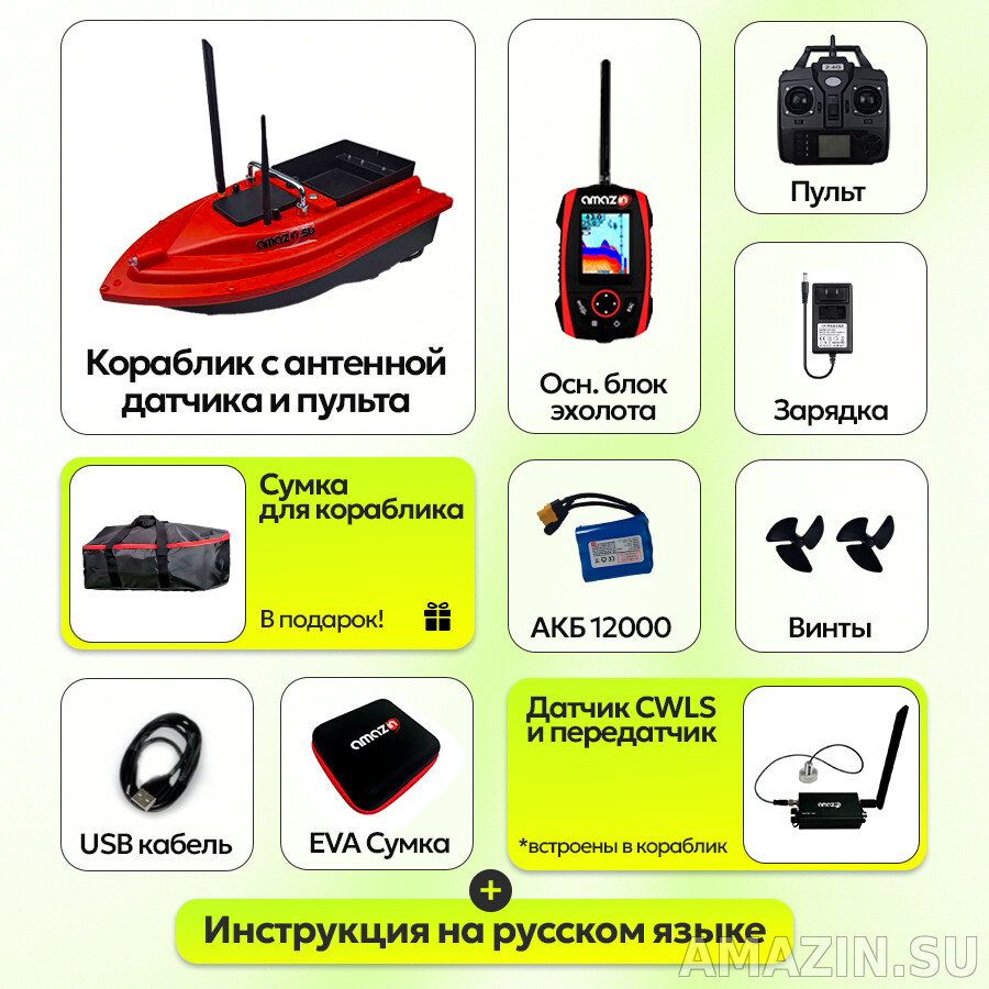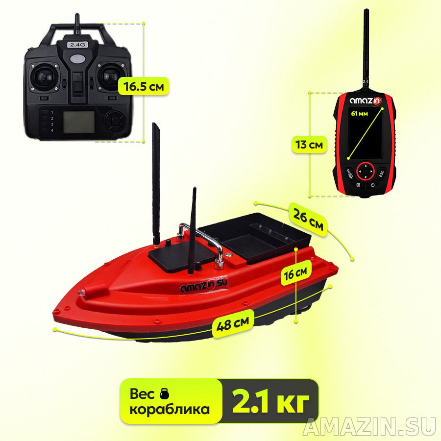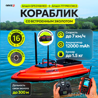 Прикормочный кораблик с GPS и эхолотом: Amazin GPS D16B RED + Amazin FFF777 PRO CWLS