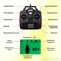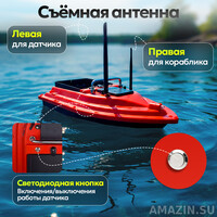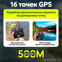 Кораблик с пультом управления: функция круиз-контроля активируется одним нажатием, а gps навигатор для кораблика с возможностью записи до 16 GPS точек позволяет точно следовать заданному маршруту. Дальность дистанционного управления в идеальных условиях достигает 500 метров, а встроенный гироскоп автоматически корректирует курс, обеспечивая идеальную точность движения. Вам не придется думать о том, как правильно установить датчик эхолота, эхолот AMAZIN FF777-PRO-CWLS уже вмонтирован в корпус кораблика и готов к работе. Устройство передает в реальном времени данные о глубине, рельефе дна и наличии рыбы, что помогает быстро определить оптимальное место для закорма рыбы. Мощный двигатель с двойными винтами и усиленным магнитом обеспечивает отличную динамику и высокую производительность при грузоподъемности до 1.5 кг.