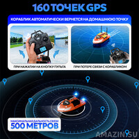 - Система автоматического возврата: кораблик защищен от потери. Он автоматически возвращается в домашнюю точку при низком заряде батареи, потере сигнала или выходе за пределы дистанции управления. Также доступен возврат в один клик.