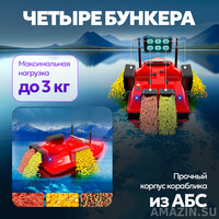 - 4 независимых бункера: Позволяют доставлять прикормку в разные точки за один заплыв или комбинировать разные типы корма.