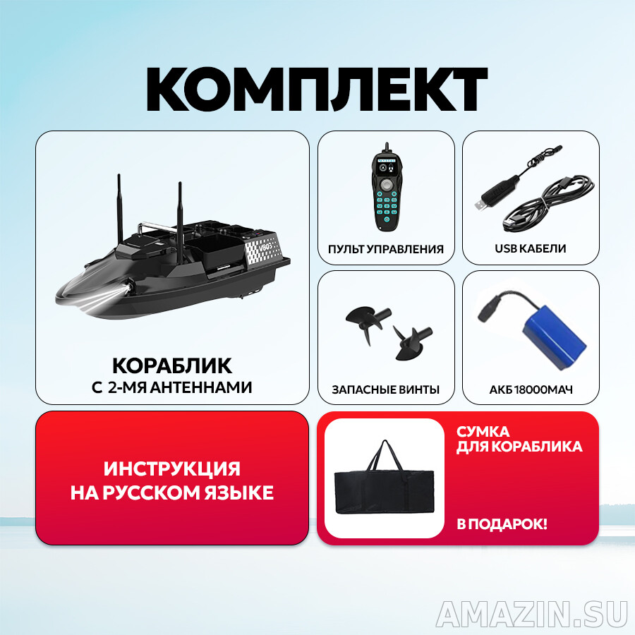 Скачать инструкцию на русском языке для Прикормочный кораблик V803 GPS Black (18000 мАч) |