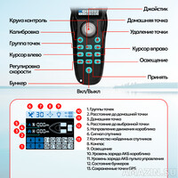 - Цветной дисплей: Пульт отображает расстояние до точки в реальном времени, заряд батареи, направление движения, количество спутников и тд.