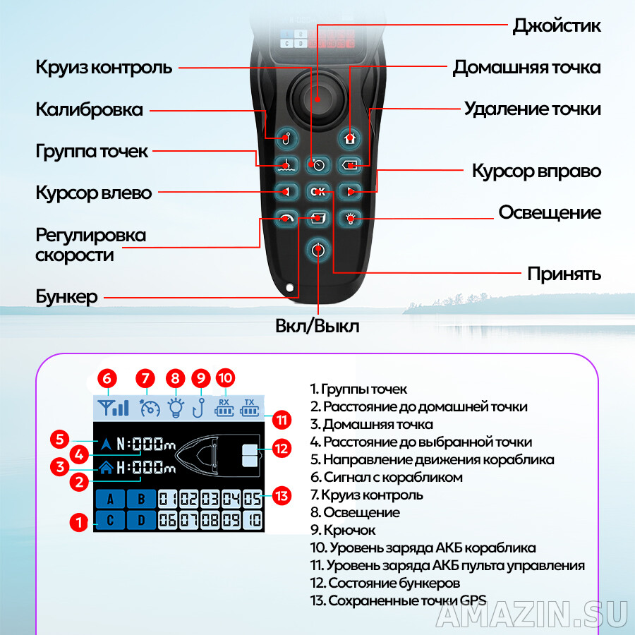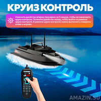 - Автовоззврат: Кораблик автоматически возвращается на домашнюю точку при низком заряде батареи или потере сигнала.