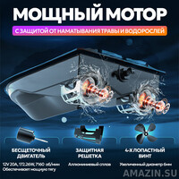 - Высокая скорость: Бесколлекторный двигатель обеспечивает скорость до 20 км/ч, а система защиты пропеллеров из алюминиевого сплава предотвращает наматывание водорослей.